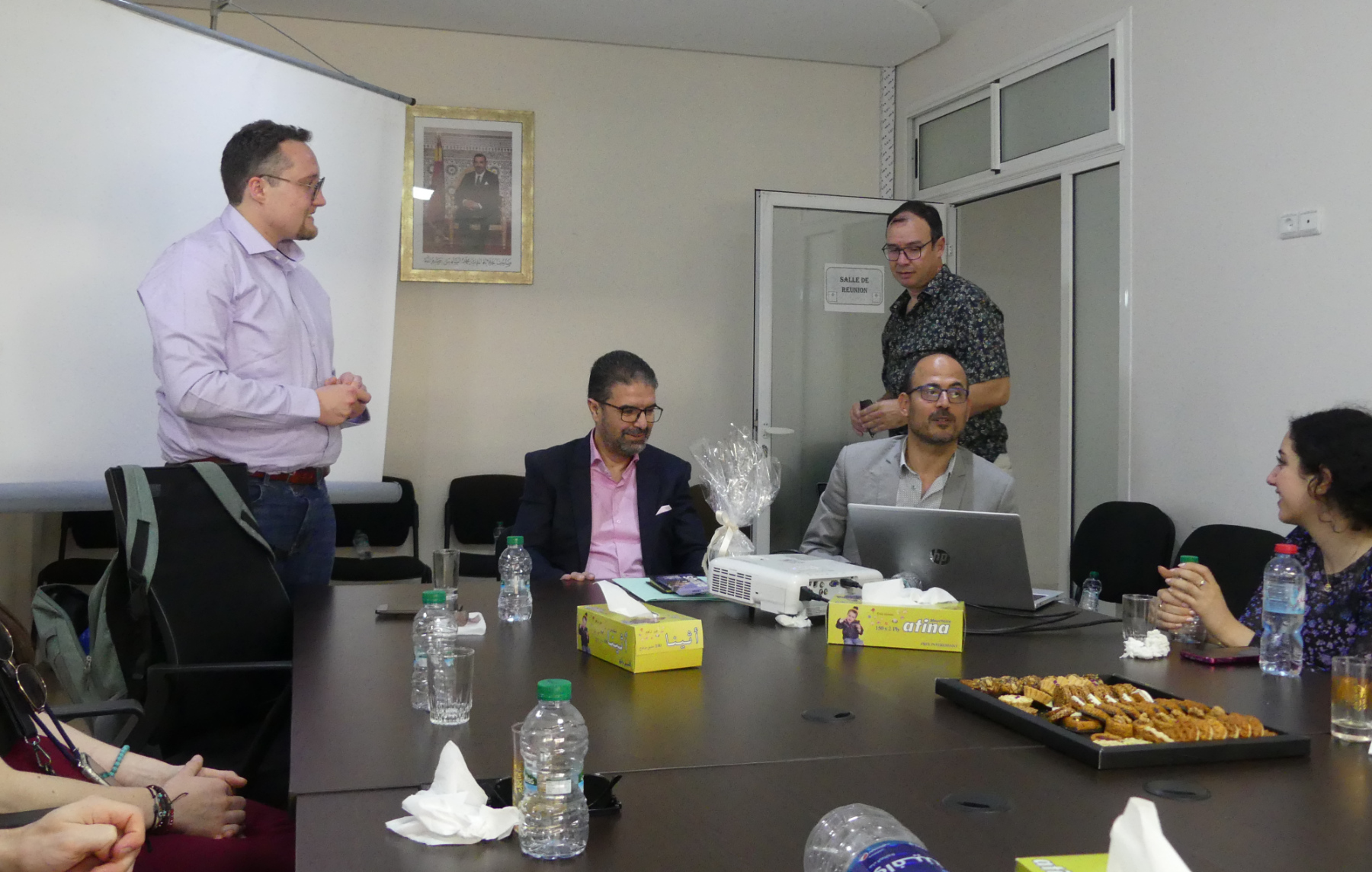 Vorträge zur Entwicklung des Landes standen im Büro der Hanns-Seidel-Stiftung Marokko, wo Büroleiter Dr. Mounir Azzaoui und Projektleiter Miloud die Stipendiatengruppe empfingen, auf dem Programm.