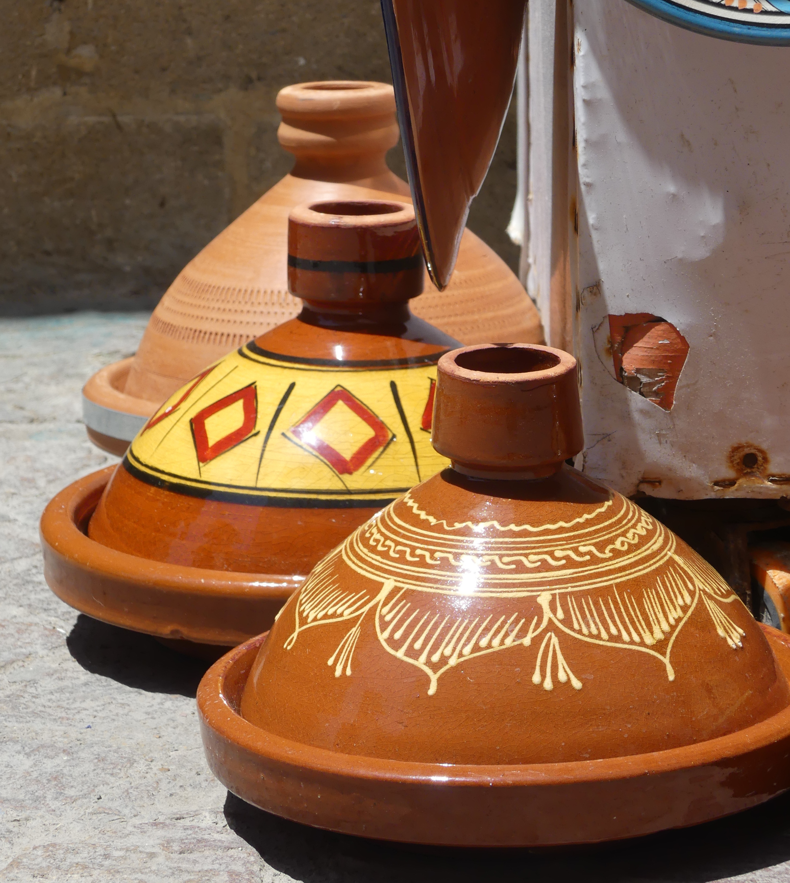 Am nächsten Vormittag erhielt die Gruppe eine Führung durch die Töpferei und Keramikwerkstatt Art Naji am Stadtrand von Fes. In dieser Kooperative wurden die Stipendiatinnen und Stipendiaten von einem jungen Marokkaner in deutscher Sprache herzlich empfangen. Er zeigte die gesamte Werkstatt, die verschiedenen Arbeitsschritte der Töpfer und den Ausstellungsraum mit den bunten Waren. Man konnte zusehen, wie die Töpfer Tajine, den traditionellen Ton-Topf, formen und auch große Vasen herstellen. Nach dem ersten Brand werden diese mit verschiedenen Mustern von geduldigen Malerinnen und Malern verziert. Es werden auch aufwendige Mosaike gefertigt und am Ende entstehen bunte Tischplatten, Wandfliesen oder Dekoration.