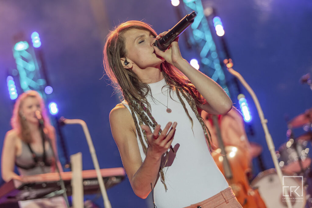Nicht nur die 5.000 Menschen im Publikum, die Stimmung auf dem Open-Air Gelände und die vielen Lichter, die ihren Auftritt unterstrichen, machten Lieder auf Banz für Ronja eine „epische“ Erfahrung. Ebenso das, was sich abseits der Bühne abspielte: Mit ihrem Idol aus Studiumstagen Bodo Wartke bis 5 Uhr morgens Lieder rauf und runter singen – das erlebt man nicht alle Tage.
